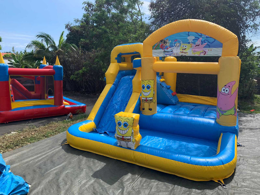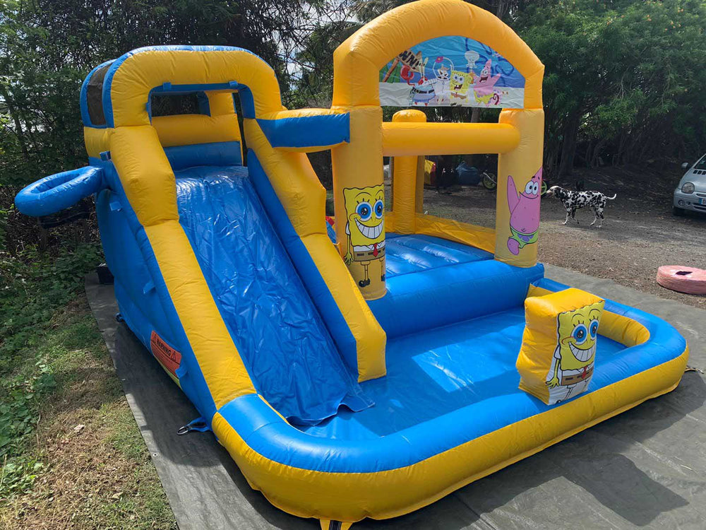Dimensions : 4m (Longueur) x 3m (largeur) x 2,5m (Hauteur)Tranche d’âge conseillée : de 3 à 8 ans.Structure conçue pour 7 à 8 jeunes joueurs.Caractéristiques :- Un toboggan aquatique- Un mur d'escalade- Un espace de saut- Un panier de basket- Une piscine (balles incluses pour une utilisation sèche)