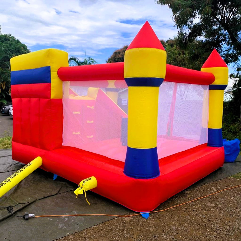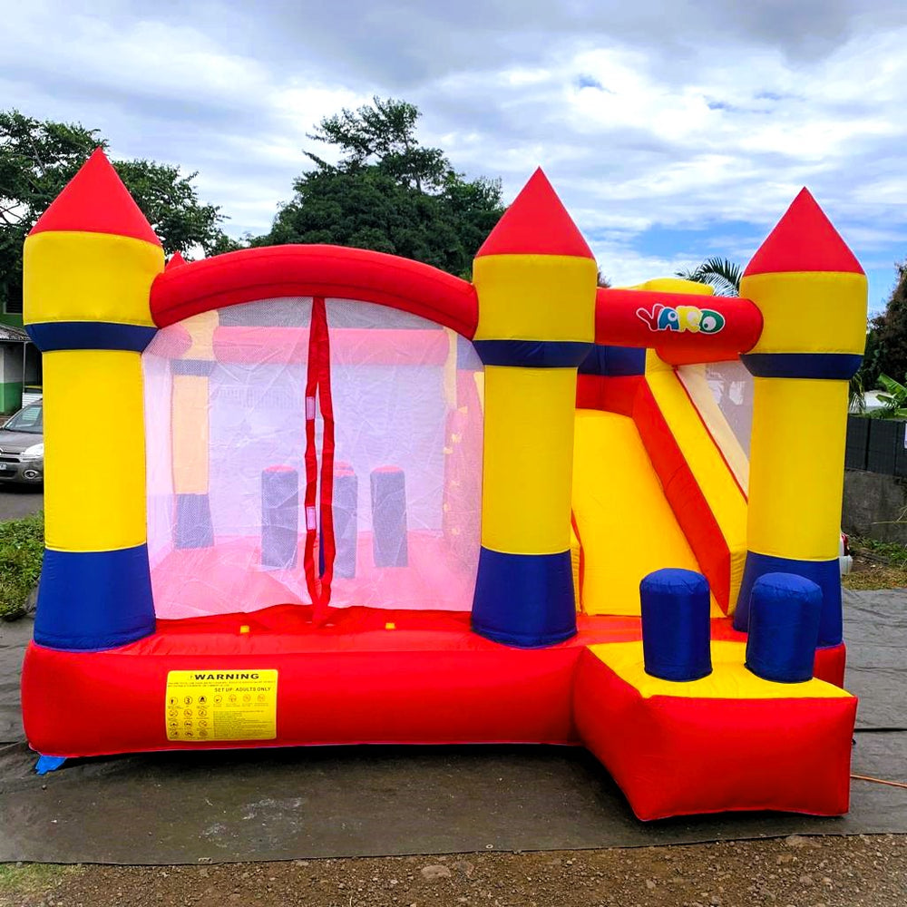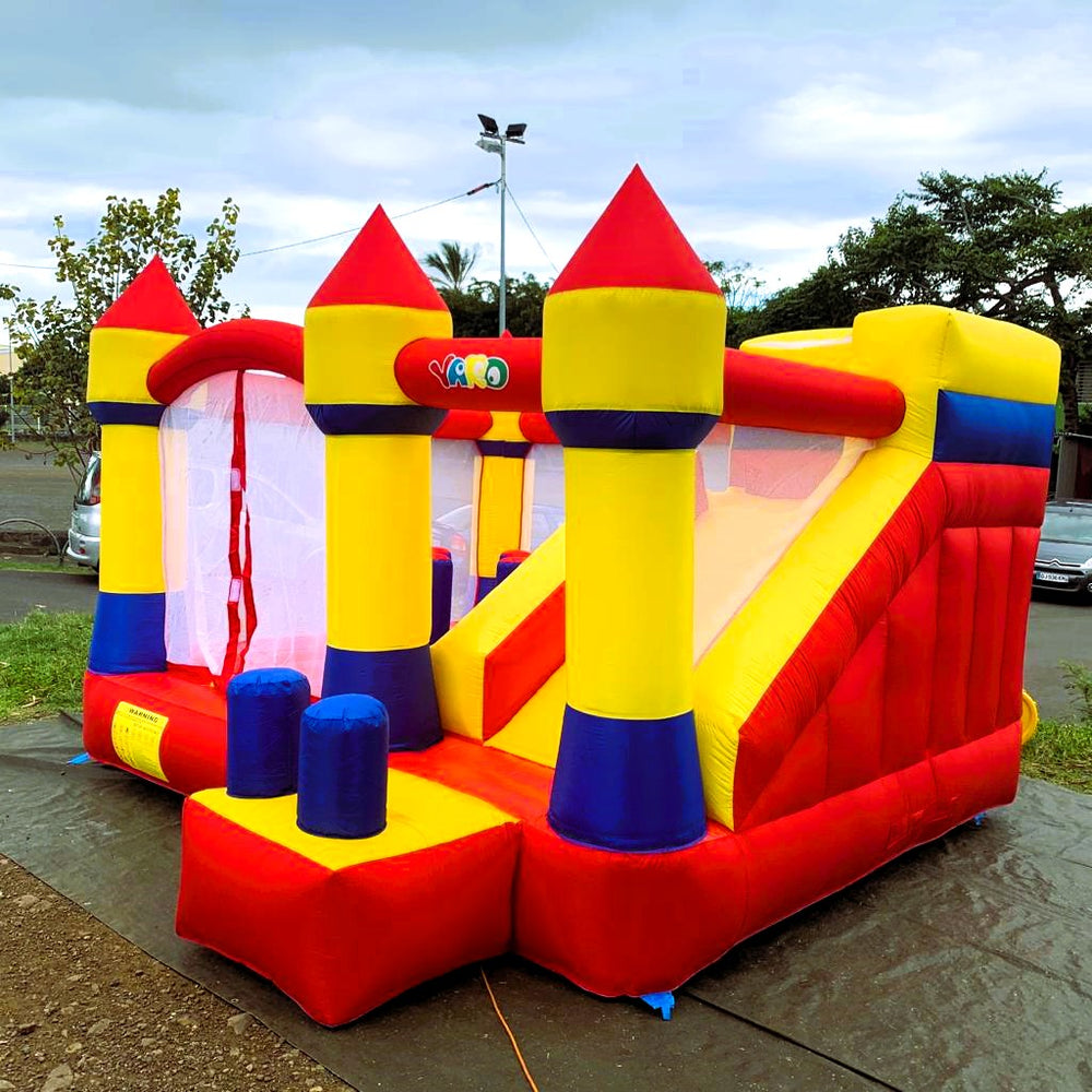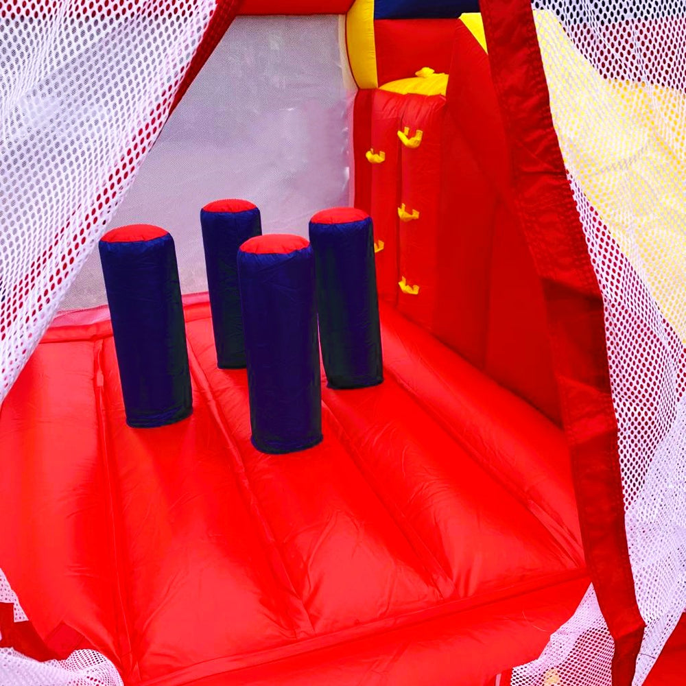 Tranche d’âge conseillée : de 3 à 8 ans.Structure conçue pour 6/7 jeunes joueurs.Caractéristiques :- Un toboggan- Un espace pour sauter- 1 mur d'escalade- 4 punching-balls dans l'espace de saut- 2 punching-balls en sortie de toboggan