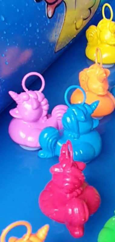 Dimensions : 2,20m (Longueur) x 1,40m (Largeur) x 0,30m (Hauteur)Inclus :- 50 canards ou 50 “canards licornes"- Pompe de gonflage- Pompe pour la circulation de l'eau- 12 cannes à pêche et 12 paniers