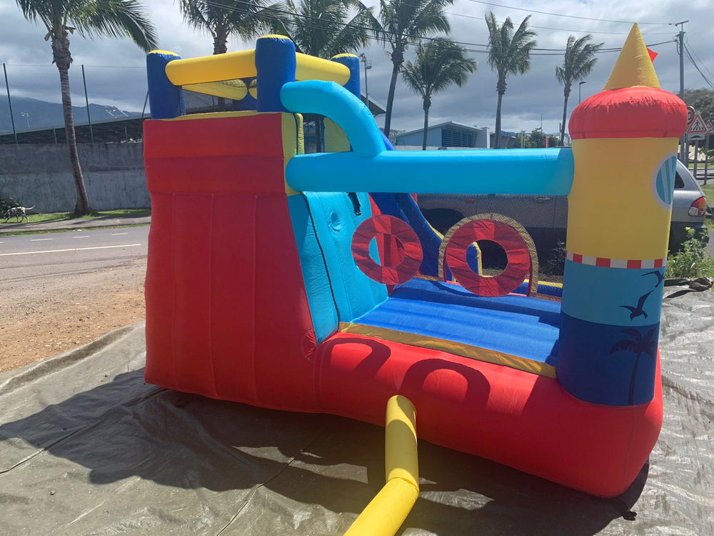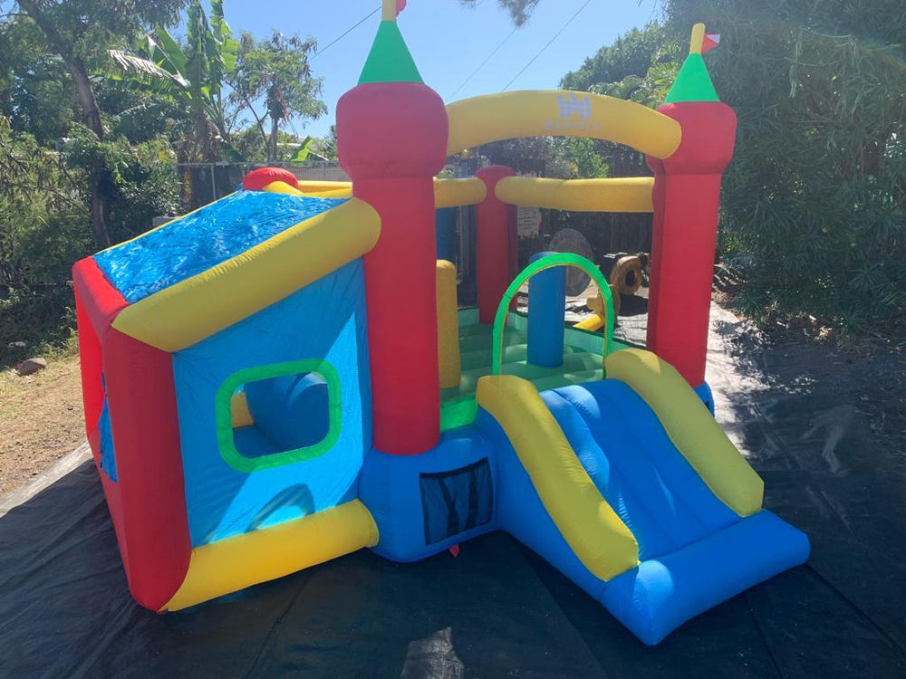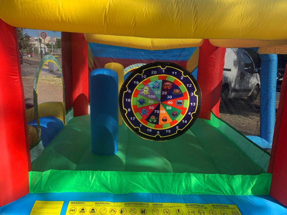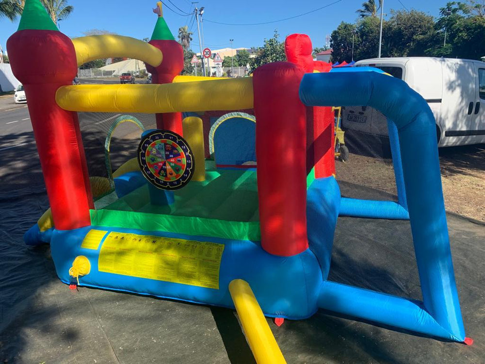 Dimensions : 3.80m (Longueur) x 3,05m (largeur) x 2,15m (Hauteur)Tranche d’âge conseillée : de 2 à 6 ans.Structure conçue pour 5/6 jeunes joueurs.Caractéristiques :- Un toboggan- Un espace pour sauter- Une piscine à balles (balles incluses)- Un panier de basket- Une cage de foot- Une cible pour balles à scratch- Des obstacles