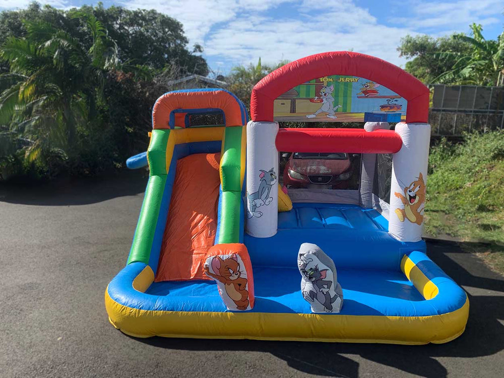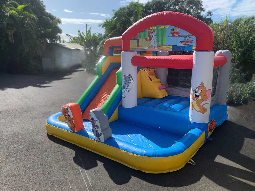 Tranche d’âge conseillée : de 3 à 8 ans.Structure conçue pour 7 à 8 jeunes joueurs.Caractéristiques :- Un toboggan aquatique- Un espace de saut- Un mur d'escalade- Un panier de basket- Une grande piscine à balles (balles incluses pour une utilisation sèche)